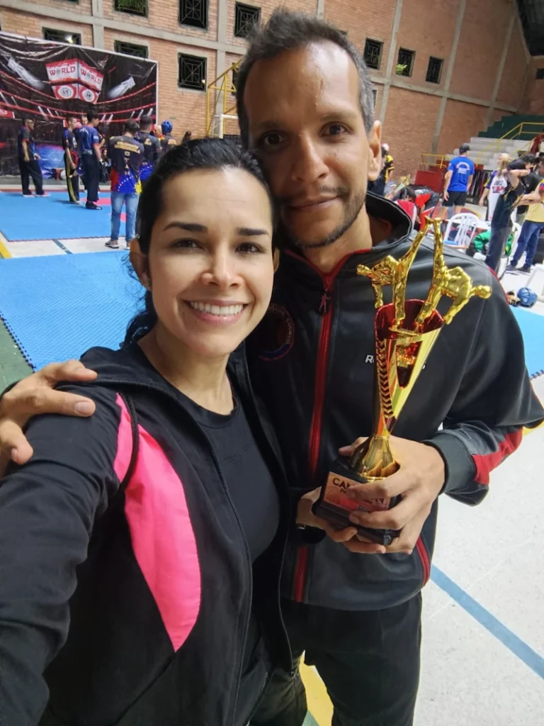 Morgan Vásquez, Campeón Panamericano Point Fighting WKS 2025 y su esposa Andrea.